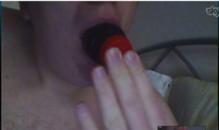 This cock sucker lives in the UK, and still lives at home with his Mommy. That vibrator in his mouth actually belongs to her… (shivers) This disgusting loser also likes to play on cam for free just so that he can be humiliated.